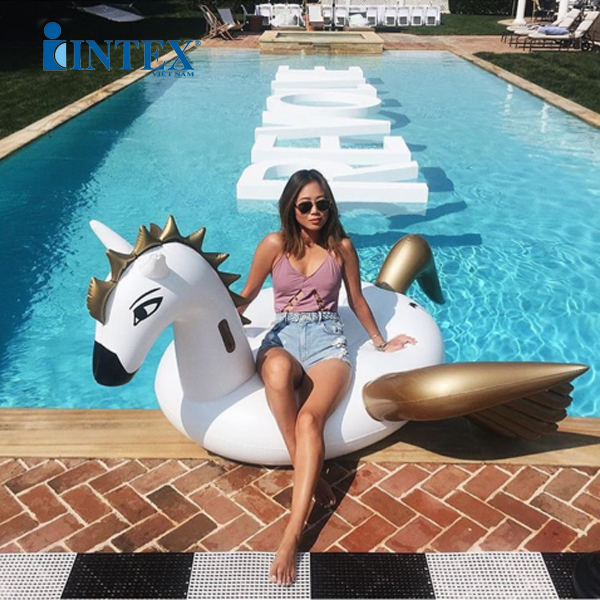 - Phao bơi ngựa thần khổng lồ được sản xuất trên dây chuyền công nghệ và nguyên liệu nhập khẩu từ Châu Âu. Độ dầy phao 0.3mm, kiểu dáng tuyệt đẹp, rất được ưa chuộng bởi các minh tinh và siêu mẫu hàng đầu trên thế giới